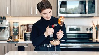 6. Top each latte with marshmallows. Carefully torch the marshmallows with a blowtorch until golden and melty. Alternatively, you can broil them in the oven on a heatproof surface until toasted.