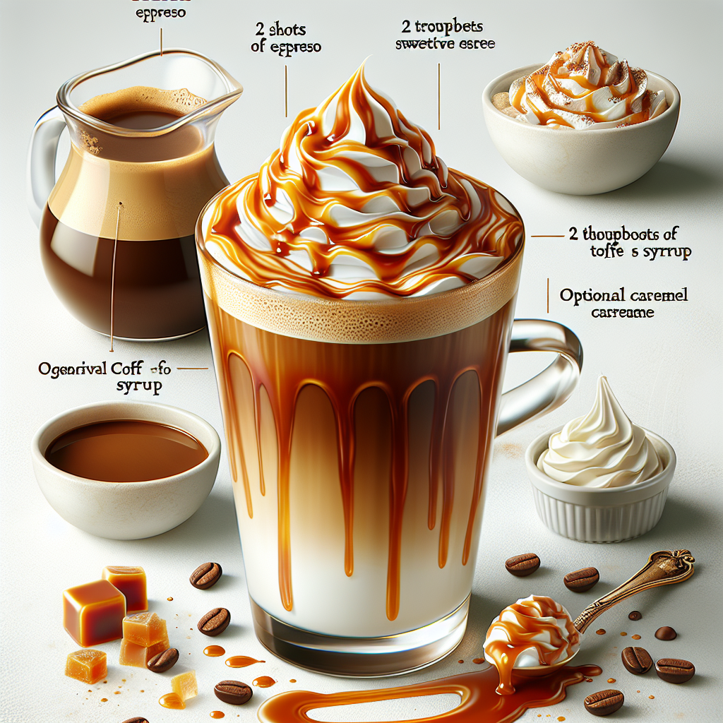 The Toffee Coffee Latte is a sweet and indulgent beverage that's perfect for coffee enthusiasts and those with a sweet tooth alike. This creamy latte combines the rich, robust flavors of espresso with the buttery sweetness of toffee. Frothy milk is steamed and poured over a shot of espresso, then swirled with a generous amount of toffee syrup. It's often topped with whipped cream and a drizzle of caramel sauce, making for a luxurious treat that's ideal for sipping on a cozy afternoon or as a delightful dessert coffee. The Toffee Coffee Latte is not only warming and comforting but also easy to customize to one's sweetness preference.