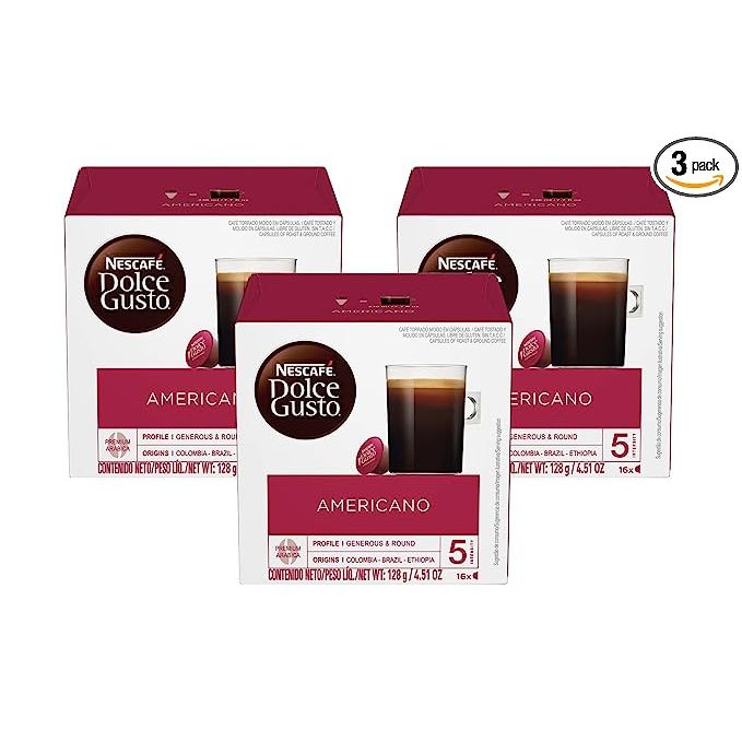 Dolce Gusto Nescafe Coffee Pods, Americano, Capsules, 16 Count, Pack of 3, are the go-to choice for coffee enthusiasts seeking a quick and hassle-free way to savor the perfect cup of Americano. Designed to be used with the Dolce Gusto coffee machine, these pods guarantee a consistently superior brewing experience that is second to none.