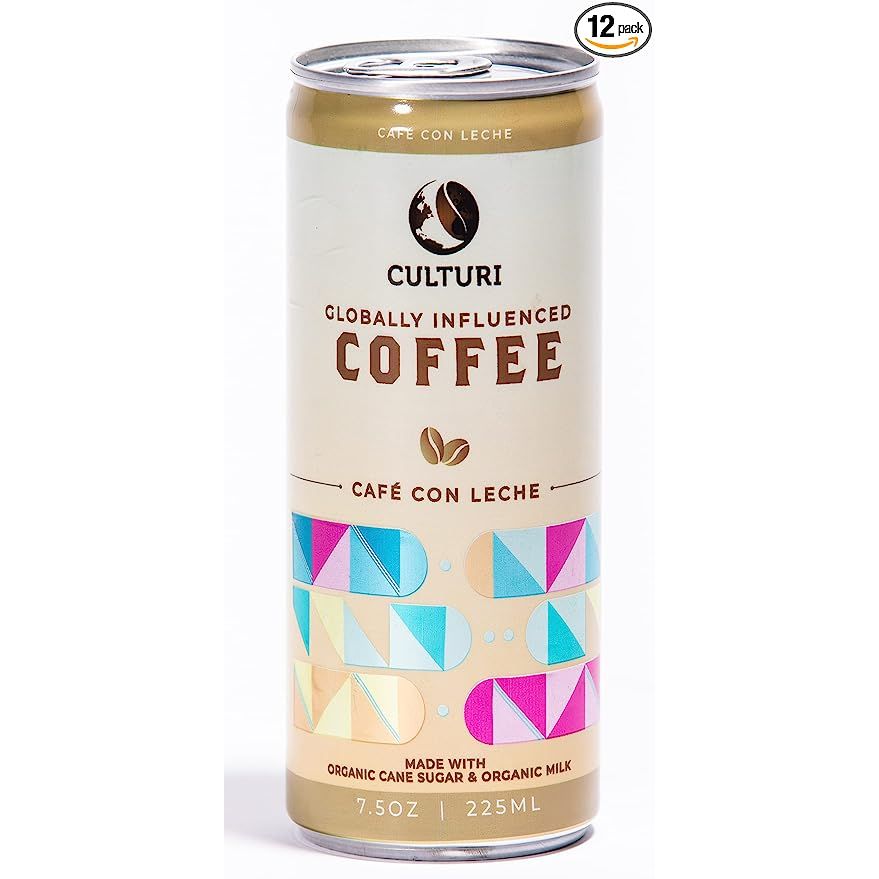 Organic Cafe Con Leche - All Natural Non-GMO Iced Coffee with Whole Milk and Cane Sugar - Culturi Cold Brew - Preservative Free, Shelf Stable, Best Enjoyed Chilled (12 Pack of Cans)