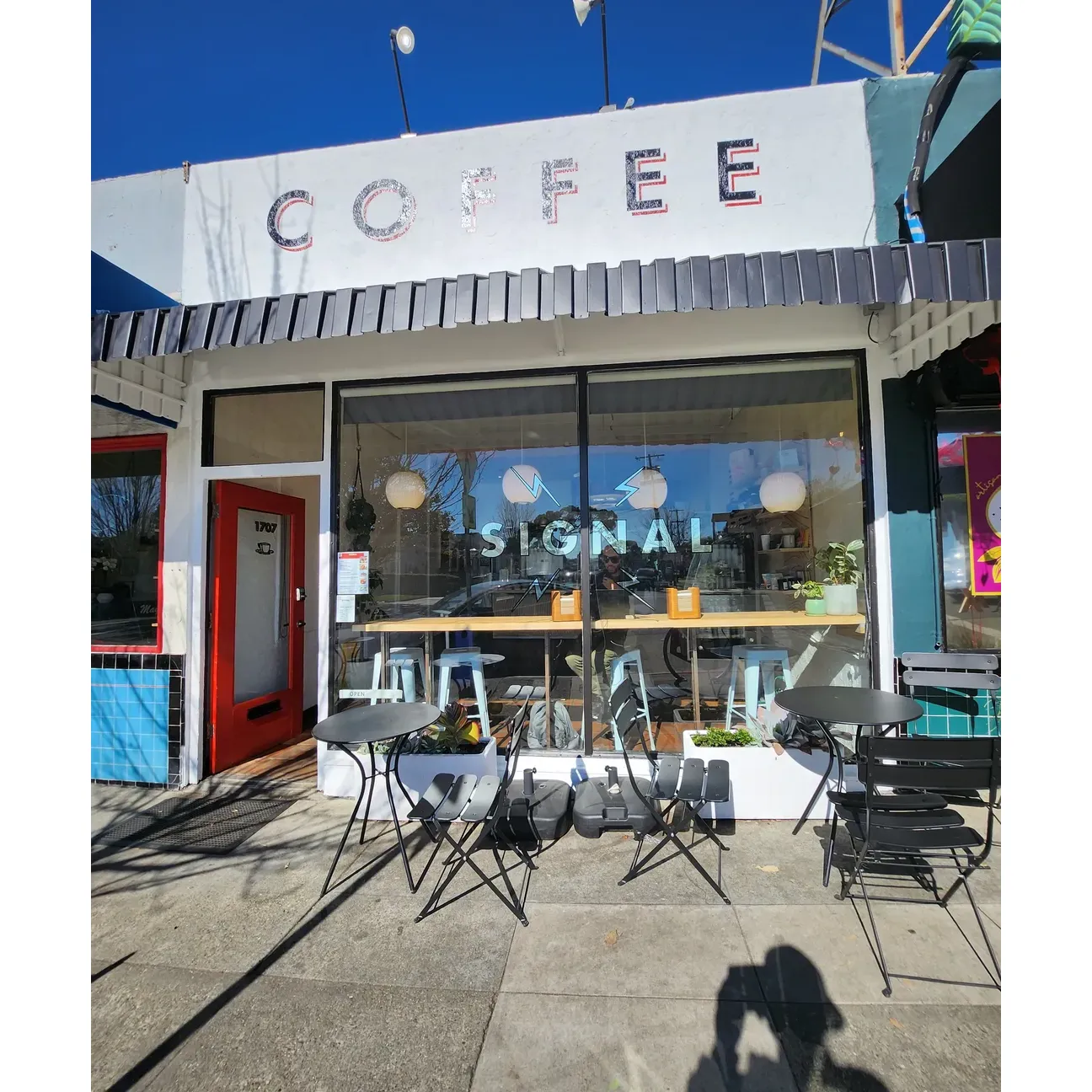 Signal Coffee Roasters strives to curate an ideal environment for enjoyment and relaxation. While the bustling Solano ambiance spills over as street noise, the option to sit outside offers a refreshing setting for savoring that handcrafted cup.