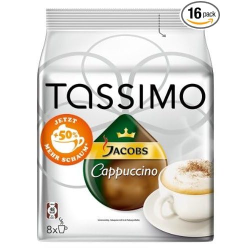 Each package of Tassimo Jacobs Cappuccino comes with 16 T-Discs, giving you 8 servings of this delectable beverage. Say goodbye to constantly restocking your supply and say hello to multiple cups of velvety cappuccino whenever you desire.