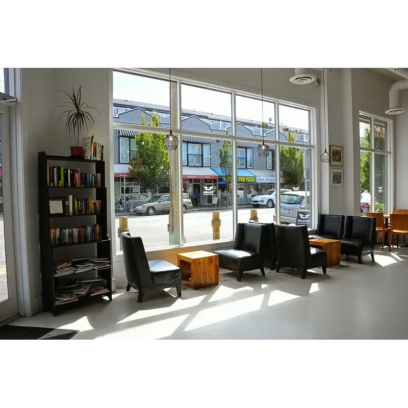The café boasts a spacious and airy environment, complete with high ceilings that amplify its welcoming atmosphere. Customers enjoy the ample seating area, perfect for varying needs - whether settling down with a laptop to tackle work, relaxing with a book, or gathering with friends for a leisurely catch-up.