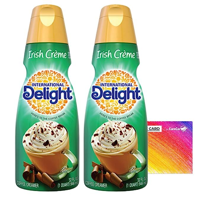 Bundle of Coffee Creamer. Contains Two (2) 32 fl oz bottles of International Delight Liquid Coffee Creamer and One Genuine CureCor Collective Sticker! (Irish Cream)