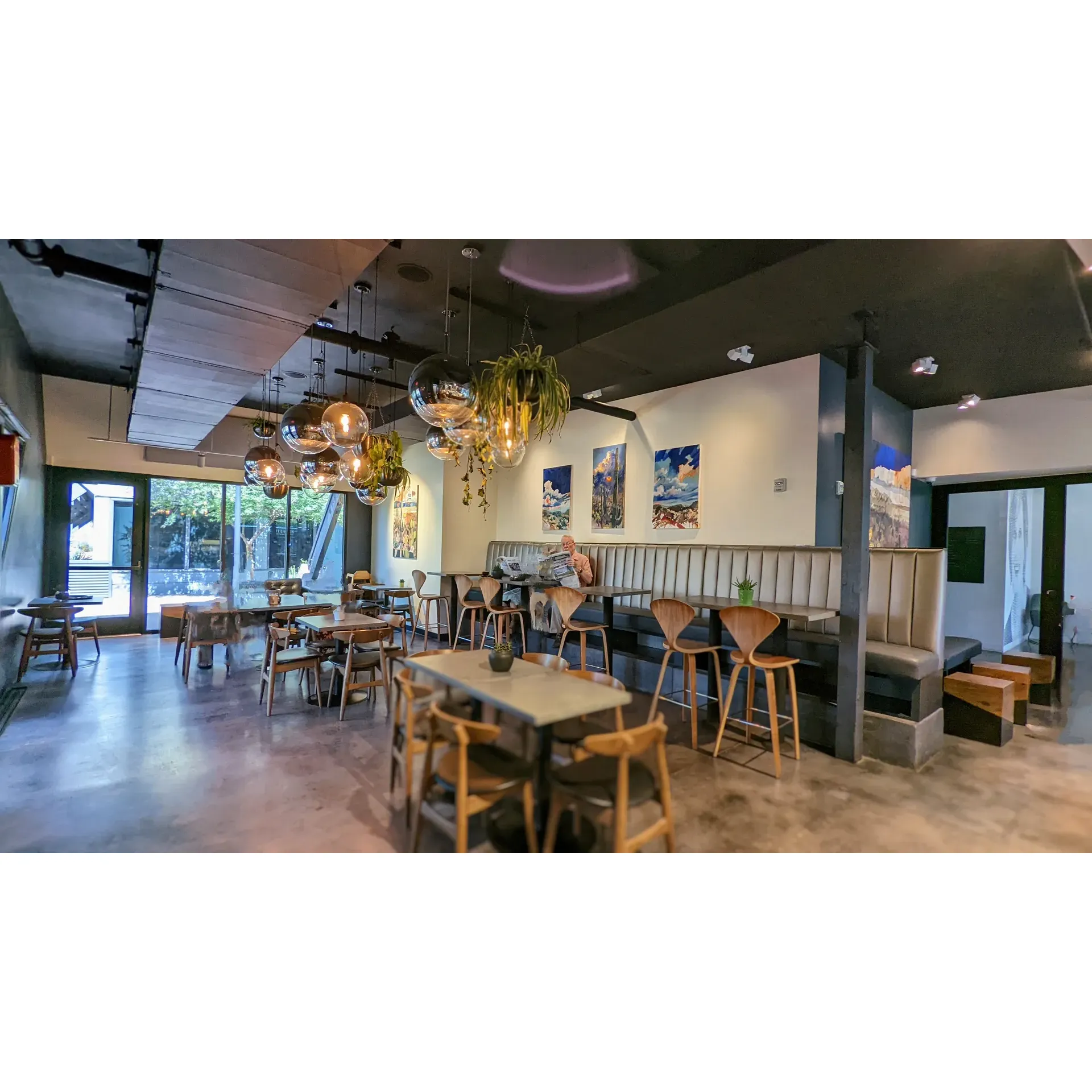 Health and environment-conscious individuals appreciate the café's commitment to sustainability, as evidenced by its compostable and recyclable takeout options. The space itself is a peaceful haven, flooded with natural light, subtle jazz music, and the vitality of indoor plants. The outdoor seating comes complete with large umbrellas, offering a shaded retreat on sunny days.