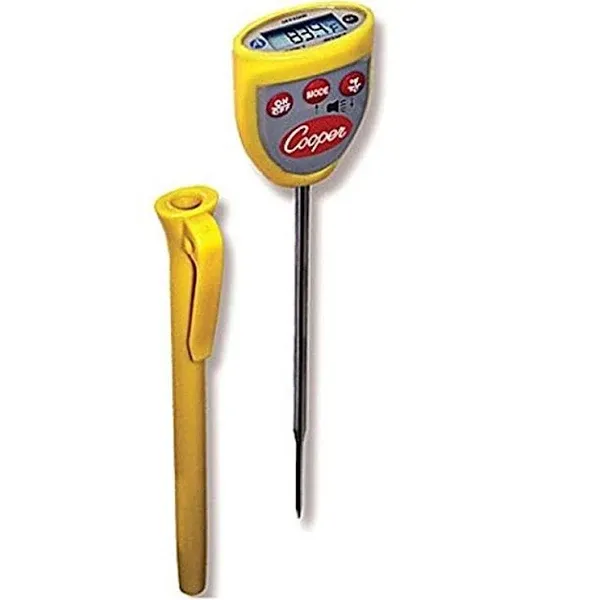 The COOPER ATKINS 4-3/4 Stem Digital Pocket Thermometer is an essential tool for precise temperature measurement in various environments. From professional kitchens to home cooking, this thermometer delivers accurate readings for perfect cooking results. Its 4-3/4 inch stainless steel stem effortlessly penetrates liquids, soft foods, and thick meats, while its durable construction ensures long-lasting performance without corrosion or warping issues. With a temperature range from -40 to 302 Degrees Fahrenheit, a clear and easy-to-read digital display, and a convenient hold function for future reference, this thermometer is both versatile and user-friendly. Powered by a small battery and easy to maintain, the COOPER ATKINS 4-3/4 Stem Digital Pocket Thermometer is a reliable tool for professionals and home cooks alike.