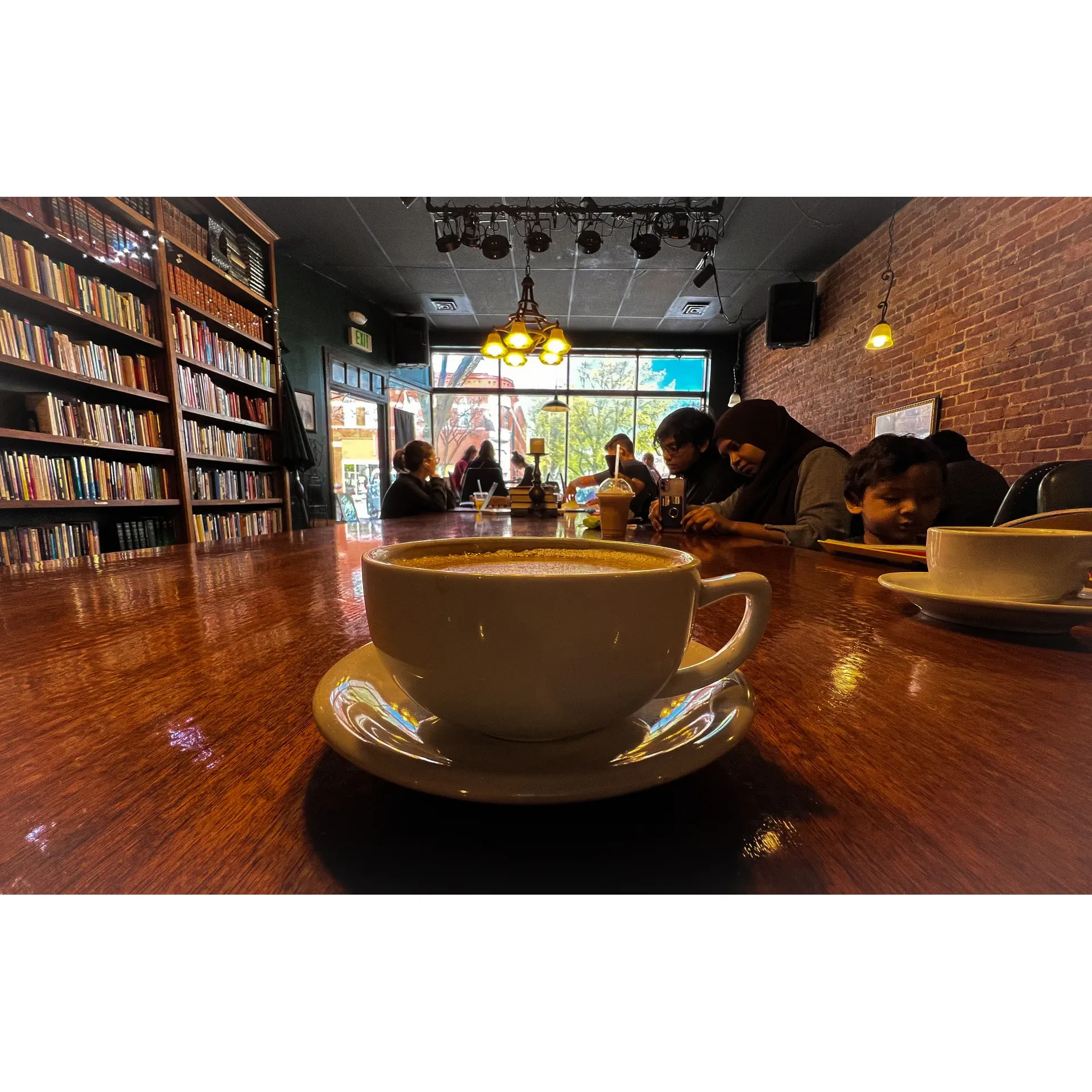 Patrons are surrounded by shelves of carefully curated books, creating a literary ambiance that invites you to unwind and perhaps lose yourself in a good read. Regular visitors applaud the establishment's cultural offerings, including vibrant weekend music by local artists that contribute to a dynamic, communal vibe. The cozy interior is anchored by a large central table, designed to spark conversation and foster new connections within the community.