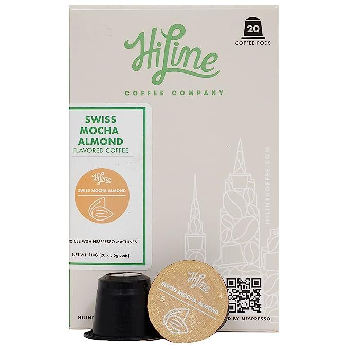 HiLine Espresso Pods, Swiss Mocha Almond Flavored Capsules, Compatible with Nespresso Original Brewers, 20 Count (Pack of 1)