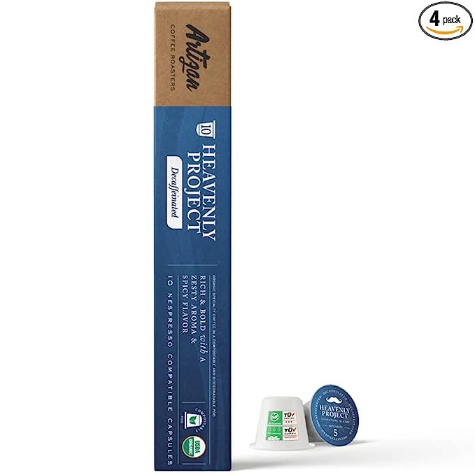 40 Compostable Pods of Decaf Espresso Blend for Nespresso Original Machines | Heavenly Project Organic Coffee | Swiss Water Processed Swiss Water Process Non-GMO Fair Trade Kosher Certified | Free from Mycotoxins and Pesticides