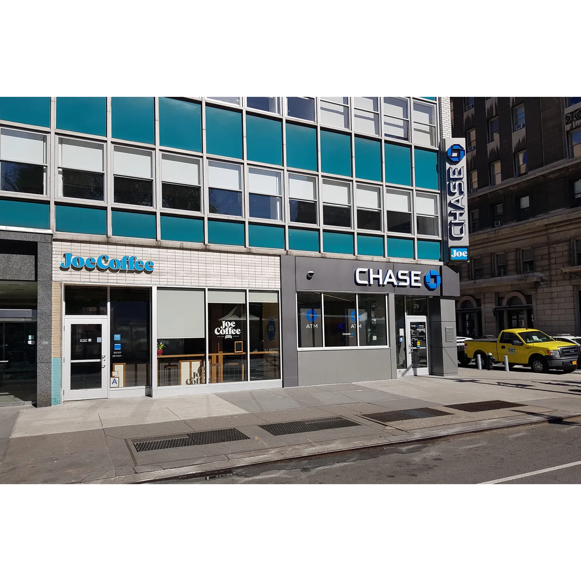 Joe Coffee Company's strategic presence alongside a local branch of Chase Bank introduces an interesting dynamic to the customer's experience, providing a juxtaposition of caffeine-fueled pleasure alongside the practicality of day-to-day banking.