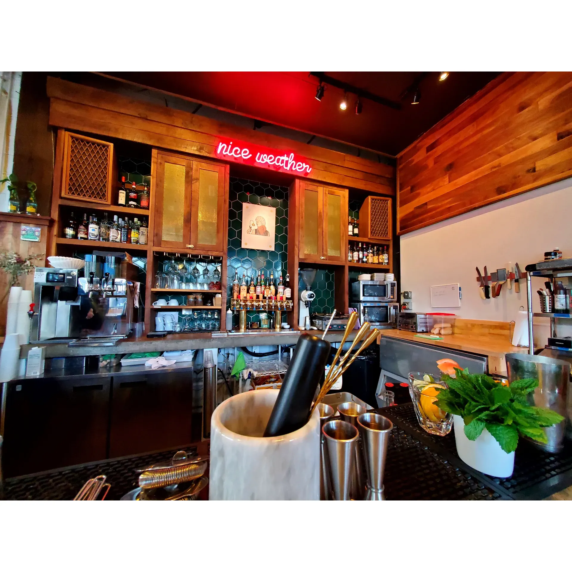 The inviting atmosphere at PROVIDER is heightened by its interior design that boasts an intimate charm accentuated by lush plants, with rays of sunlight streaming in to create a cozy retreat where guests can unwind and socialize. The space extends outdoors with ample patio seating, allowing patrons to bask in the ambiance of the vibrant city surroundings.