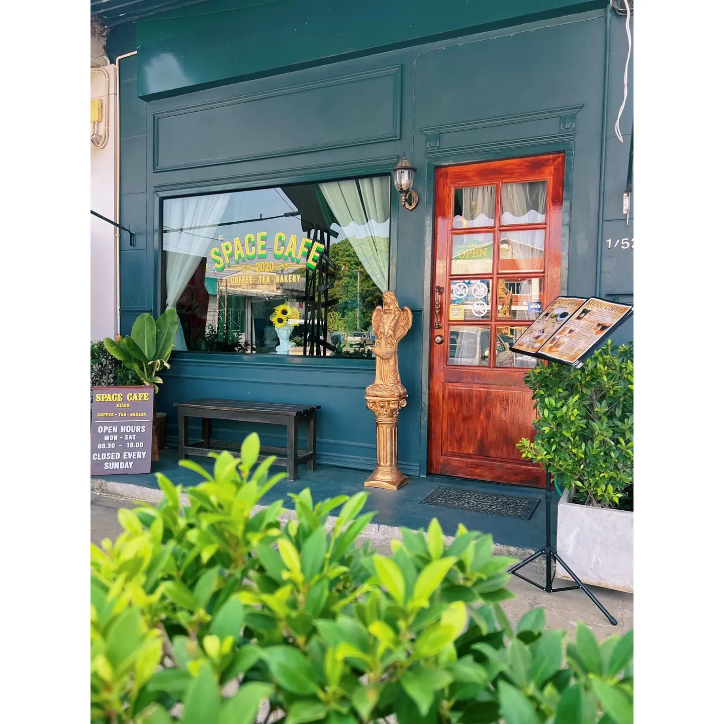 Space Cafe 2020 emerges as a charming coffee shop destination conveniently located across from the bustling train station, where travelers and locals alike can find respite and indulge in a delightful culinary experience. The cafe exudes a welcoming atmosphere with its bright, clean, and artfully decorated interior, complete with stunning handmade mirror frames that captivate the eye.