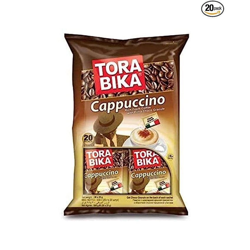 Convenience is key with Torabika Cappuccino Instant Coffee. Each package contains 20 sachets, each packed with 25 grams of instant coffee powder. This means you can effortlessly prepare and serve a delectable cup of cappuccino whenever you desire. With a total weight of 500 grams, this package ensures you'll have enough to keep those caffeine cravings at bay for a long time.