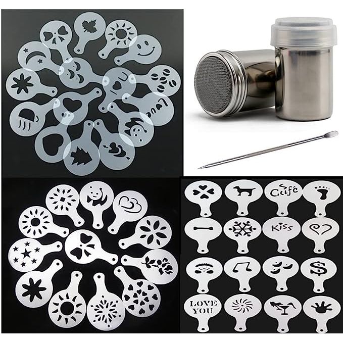 Enhance your coffee-making skills with the ultimate tool, the 44 Coffee Decorating Stencils + 2 Steel Mesh Powder Shaker + 1 Coffee Latte Art Pen by Magnoloran. With this comprehensive kit, you can effortlessly create professional-looking latte art and elevate your coffee experience.