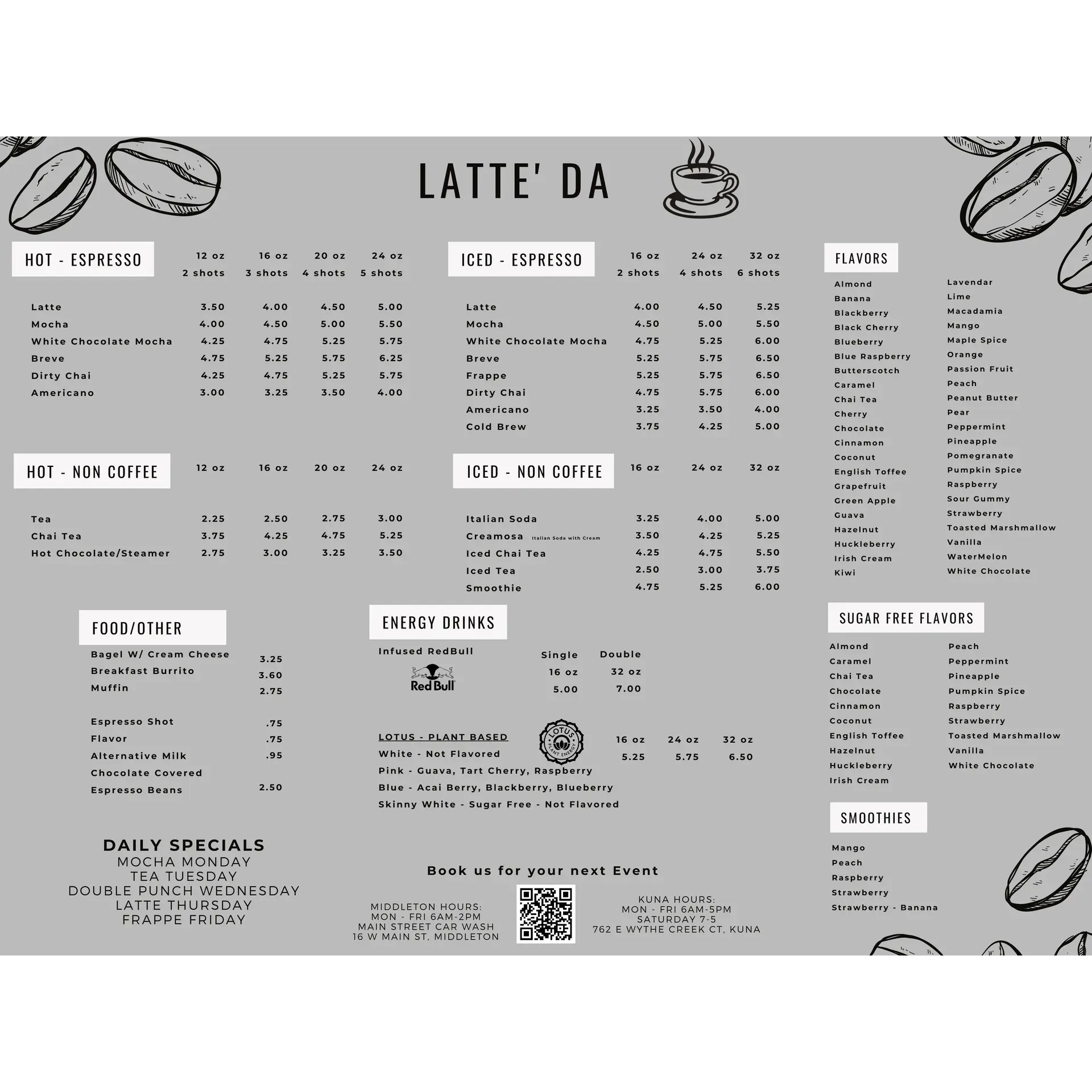 Latte' Da Middleton has quickly become a cherished hotspot for coffee aficionados and casual café-goers alike. This delightful coffee stand has earned a reputation for serving up exemplary coffee that packs a robust punch, perfect for those seeking a strong and invigorating pick-me-up. Their freshly brewed creations are met with heartwarming customer service, where each patron is greeted with a friendly smile.