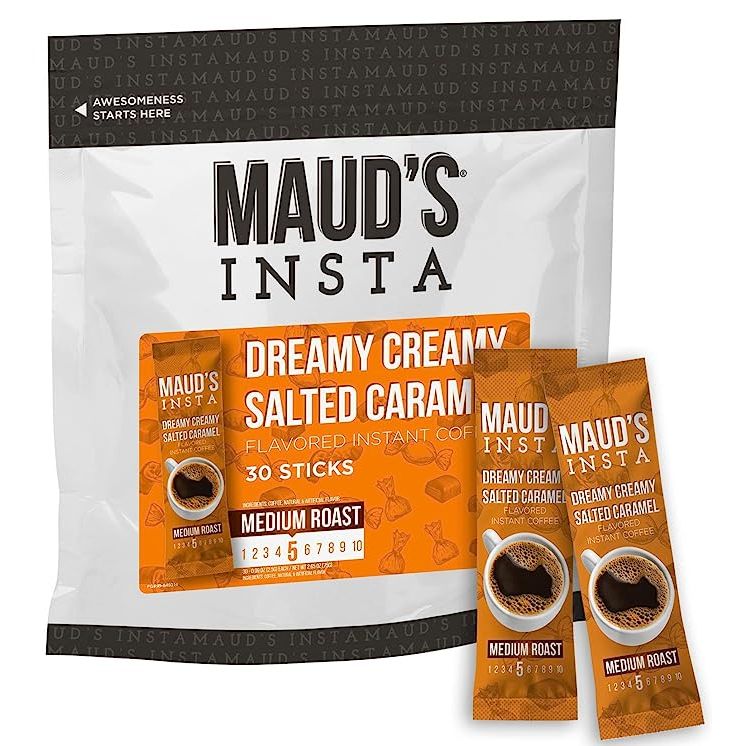 For a quick and easy caffeine fix wherever you are, Maud's Salted Caramel Flavored Instant Coffee is the ultimate choice. The convenient stick packs make it effortless to enjoy a cup of coffee without the need for coffee makers or machines. Simply add water, and you're good to go. Whether you're at home, at the office, or on the go, this instant coffee is the ideal companion for busy individuals who demand exceptional taste and convenience. Experience the difference of Maud's Instant Coffee today.