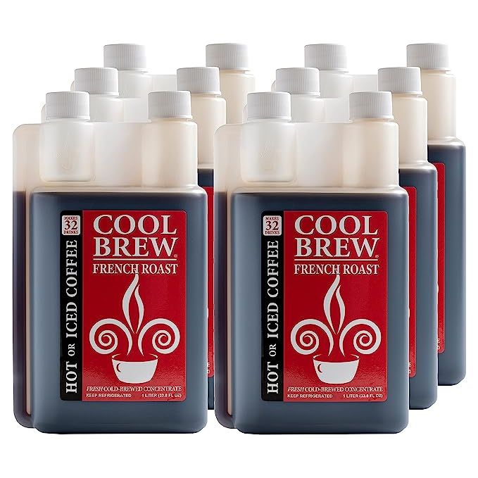 CoolBrew French Roast 6 Pack - 32 SERVINGS PER BOTTLE - Fresh Cold Brew Liquid Concentrate - For Iced or Hot Coffee, Unsweetened, No Preservatives