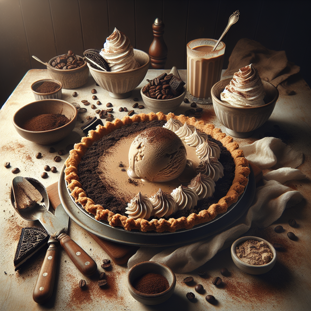 Coffee Ice Cream Pie is a decadent dessert perfect for coffee lovers and those with a sweet tooth. It starts with a buttery, crumbly crust—usually made from crushed cookies or graham crackers—and is then layered with rich, smooth coffee-flavored ice cream. For added texture and flavor, it may be topped with chocolate syrup, whipped cream, and a sprinkle of finely ground coffee or chocolate shavings. Once assembled, the pie is frozen until firm. The result is a delightful, frosty treat that combines the beloved flavors of coffee and ice cream into a dessert that is sure to impress at any gathering or simply as a special treat at the end of a meal.