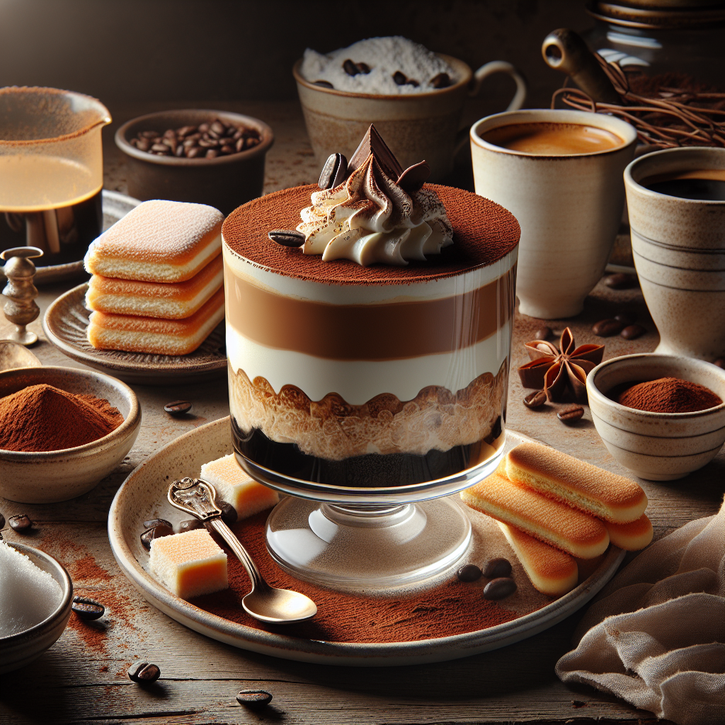 Espresso Parfait is an elegant dessert that features layers of creamy espresso-flavored mousse, rich mascarpone cheese, and delicate ladyfingers soaked in strong espresso. Topped with a dusting of cocoa powder or grated chocolate, this parfait is not only a delight for coffee lovers but also a gorgeous dessert that's perfect for ending a special meal. It's typically served chilled and offers a combination of textures and flavors that make it a sophisticated treat. Each spoonful brings together the boldness of the coffee with the sweetness of the mousse and the velvety texture of mascarpone.