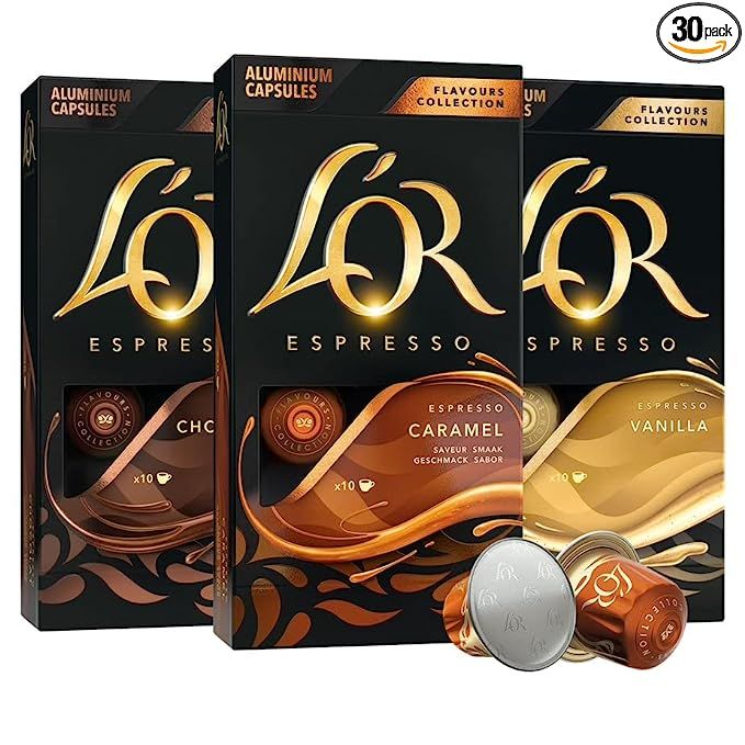 L'OR Espresso Capsules, 30-Pack Mix of Vanilla, Chocolate, and Caramel, Single-Serve Aluminum Coffee Capsules Compatible with the L'OR BARISTA System & Nespresso Original Machines