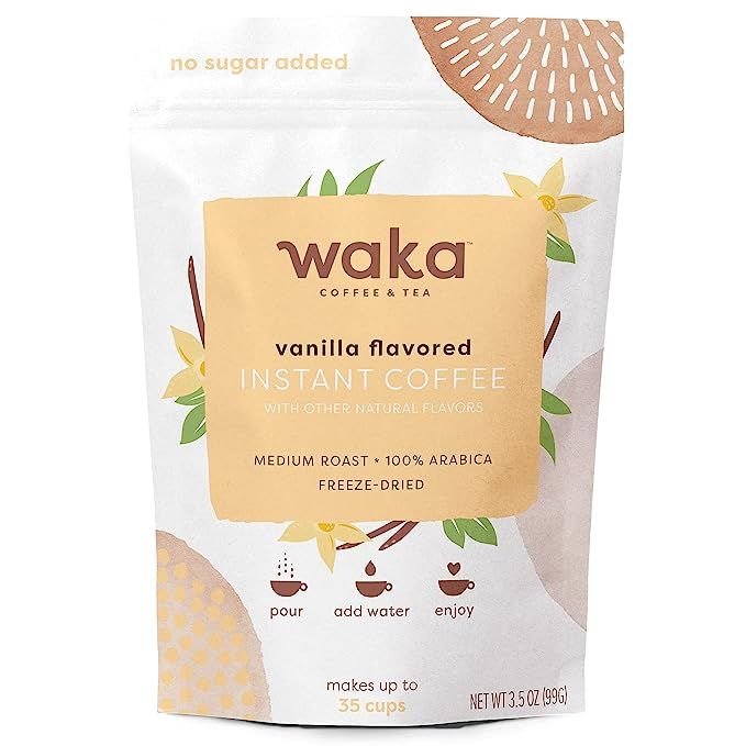 Waka Premium Vanilla Flavored Instant Coffee — 100% Arabica Freeze Dried Beans — Sugar-Free & Unflavored — 3.5 oz Bulk Bag
