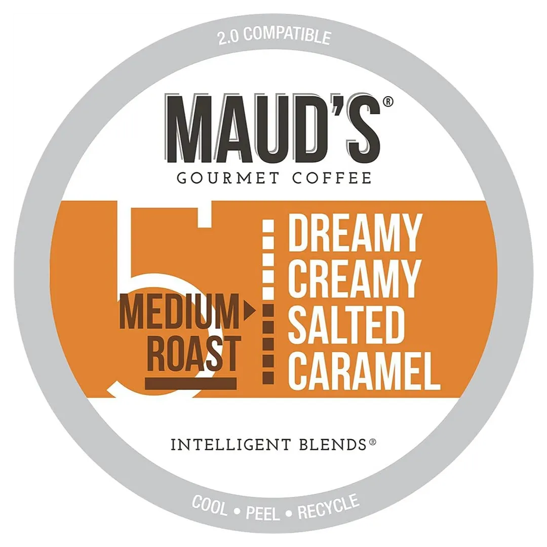 Maud's Salted Caramel Coffee (Dreamy Creamy Caramel), 100ct, provides a truly delightful and flavorful coffee experience with the added convenience of recyclable single-serve pods. These pods are made using solar energy, exemplifying Maud's dedication to sustainability and eco-friendly choices.