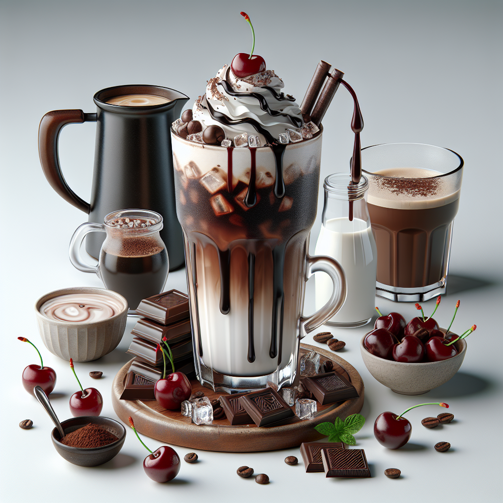 Black Forest Iced Mocha is an indulgent coffee beverage that marries the rich flavors of chocolate and cherries with the robust taste of coffee. This decadent drink is inspired by the classic Black Forest cake and is perfect for those who love a touch of sweetness in their coffee. The mocha is made by blending chilled espresso or strong coffee with chocolate syrup and a hint of cherry flavor. The drink is then poured over ice and typically garnished with whipped cream, a drizzle of chocolate syrup, and a topping of fresh or maraschino cherries. It's a refreshing and attractive option for summer days or as a special treat.