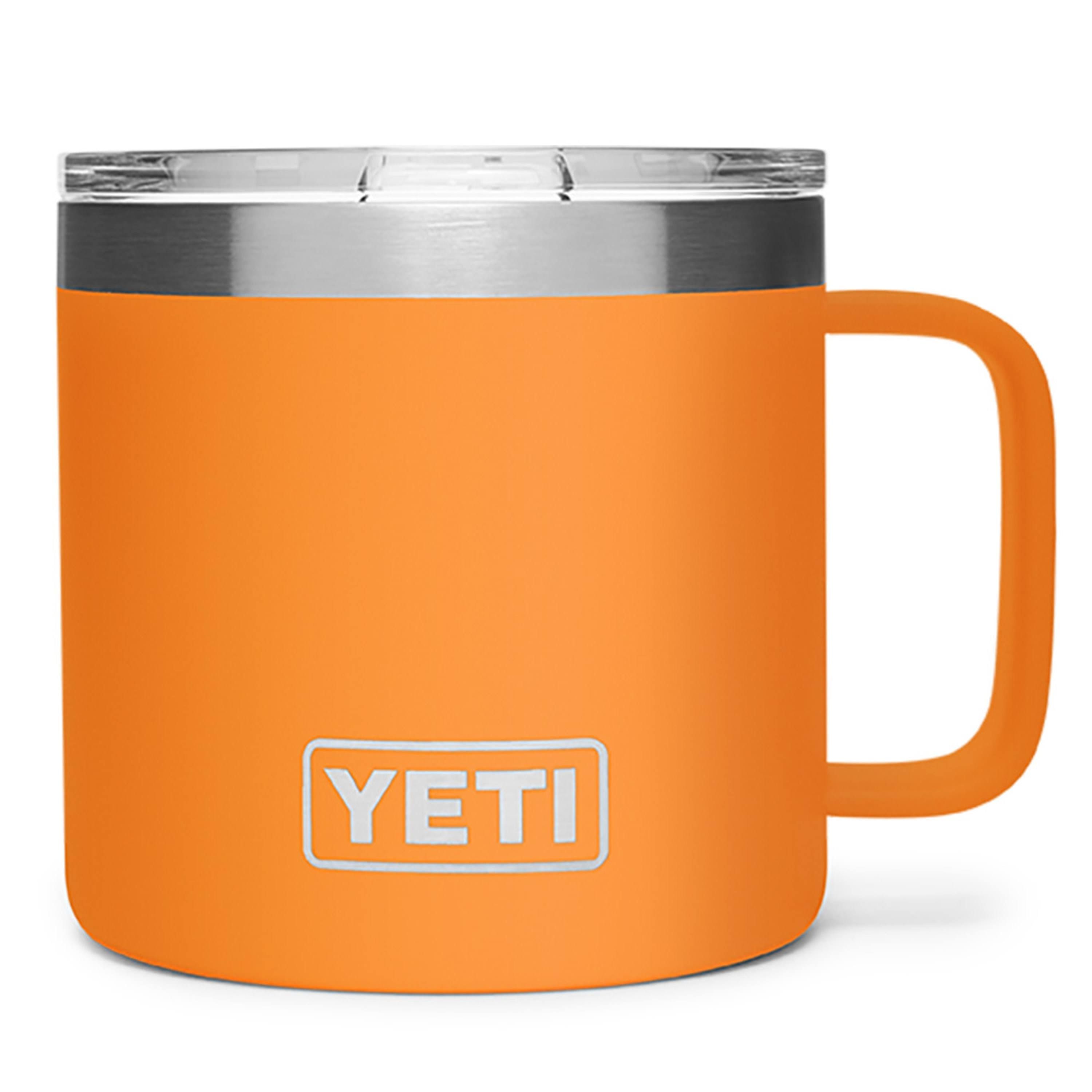 With its vibrant King Crab Orange hue, this mug adds a touch of style to your collection of drinkware. Whether you're starting your day with a steaming cup of coffee or enjoying a refreshing iced tea on the go, the Yeti Rambler 14oz Mug with MagSlider Lid in King Crab Orange is the perfect partner for your favorite beverages.