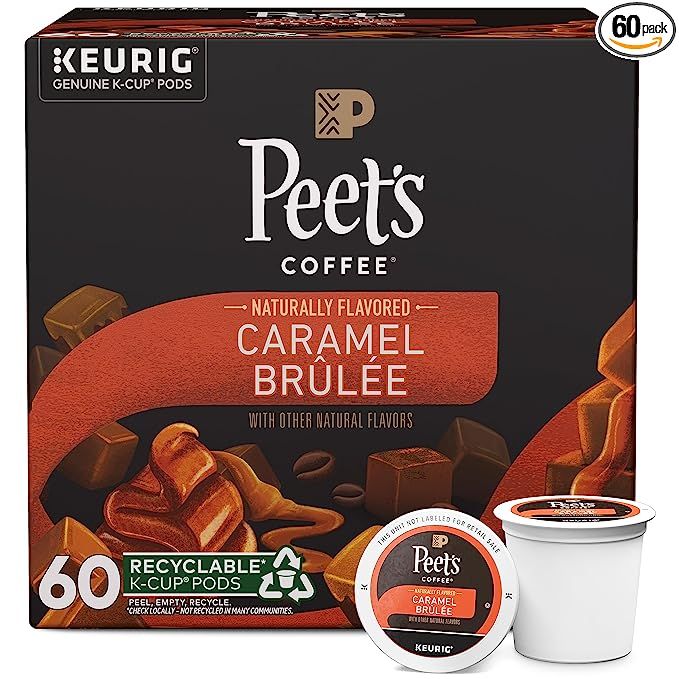 Peet’s Coffee, Caramel Brûlée K-Cup Pods for Keurig Brewers - 60 Count (6 boxes of 10 pods), Light Roast.