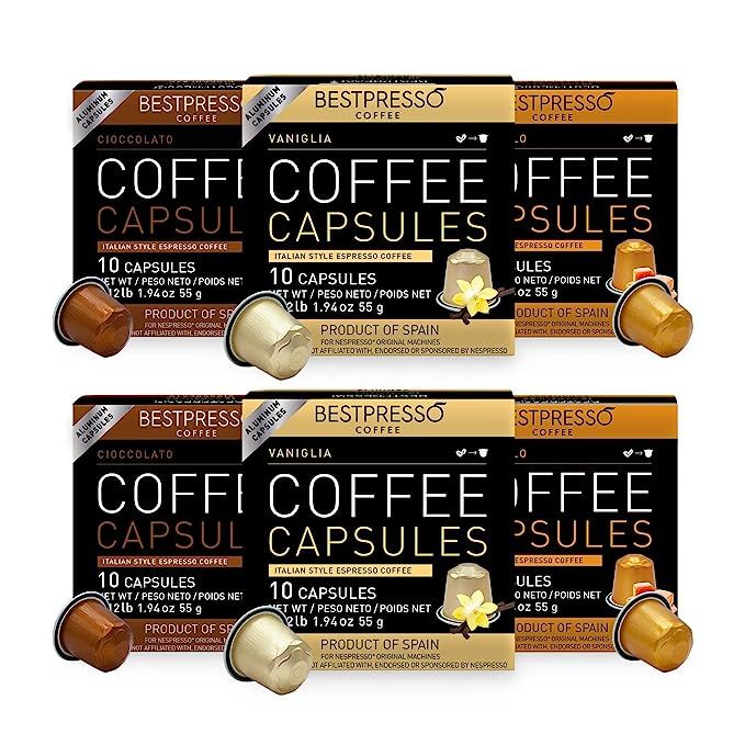 Premiumpresso Espresso Variety Pack for Nespresso Original Machine 120 Aluminum Pods, Authentic Caramel, Vanilla, and Chocolate Flavors, Compatible Pods for Nespresso Original