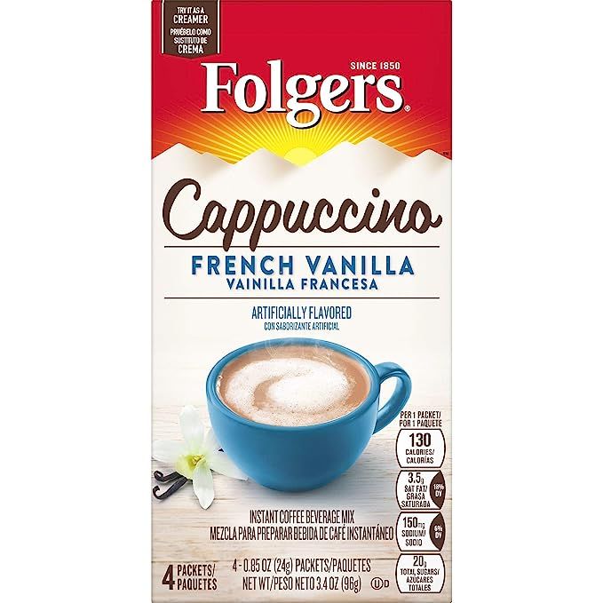 Folgers Cappuccino French Vanilla Instant Coffee Beverage Mix is the go-to choice for coffee lovers everywhere. This popular drink is now available in a convenient four-pack of single-serve packets, allowing you to enjoy it anytime, anywhere.