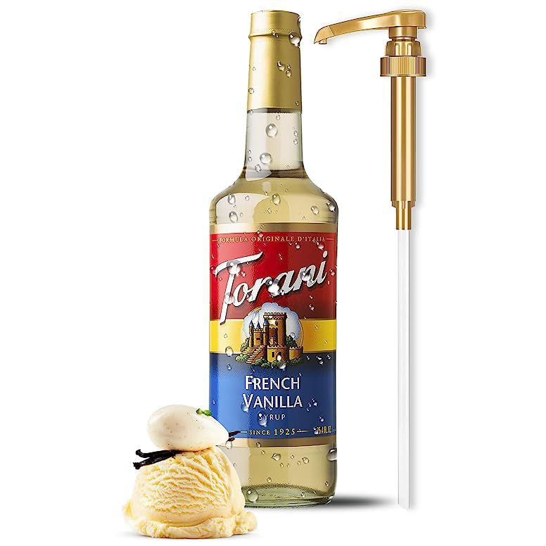 French Vanilla Syrup by Torani with Syrup Pump, Glass Bottle 750ml 25.4 Ounces